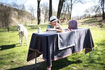 Při nákupu nad 4,500.00 Kč doprava zdarma.Oboustranný bavlněný běhoun neboli prostírání na stůl z kanafasu. Je utkaný v rodinné firmě Kanafas v Postřekově v limitované sérii 50 metrů od vzoru podle autorského návrhu Kateřiny Soukupové. Své jméno dostal na počest jedné z hlavních postav slavného filmu Velká žranice.