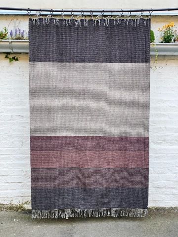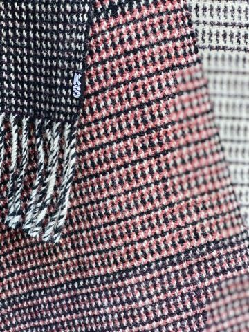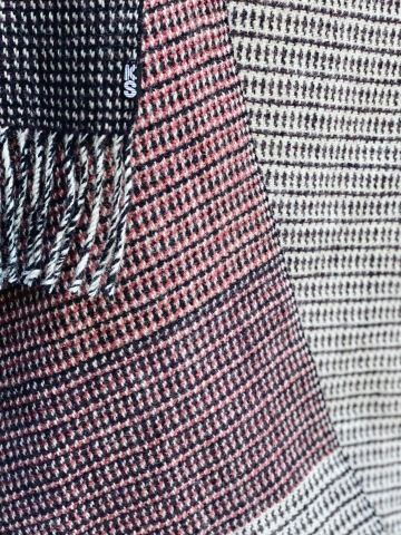 Černo-režná osnova protkaná růžovo-černo-režným útkem.