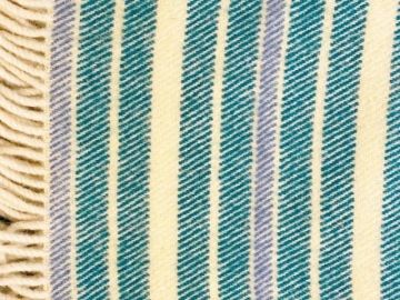 Hřejivá vlněná deka s ručně stáčenými třásněmi utkaná ve strmilovské rodinné tkalcovně podle našeho autorského návrhu.