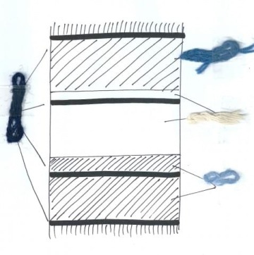 Režná osnova s nepravidelnými modro-režnými pruhy v útku.