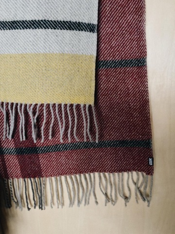Poctivá česká vlněná deka s ručně stáčenými třásněmi utkaná ve strmilovské rodinné tkalcovně podle našeho autorského návrhu.