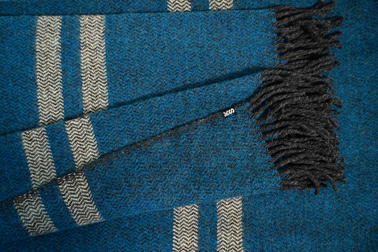 Hřejivá vlněná deka s ručně stáčenými třásněmi utkaná ve strmilovské rodinné tkalcovně podle našeho autorského návrhu.