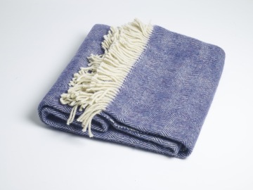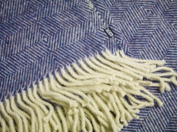 Hřejivá vlněná deka s ručně stáčenými třásněmi utkaná ve strmilovské rodinné tkalcovně podle našeho autorského návrhu.