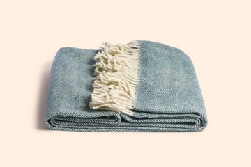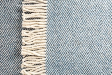 Hřejivá vlněná deka s ručně stáčenými třásněmi utkaná ve strmilovské rodinné tkalcovně podle našeho autorského návrhu.