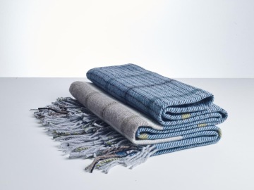Poctivá česká vlněná deka s ručně stáčenými třásněmi utkaná ve strmilovské rodinné tkalcovně podle našeho autorského návrhu.