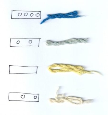 Režná osnova v pravidelně se střídajících modro-režno-žluto-šedých pruzích v útku. Využití tkalcovských karet, které se původně používaly na typ tkaniny nazývané „šerka“.