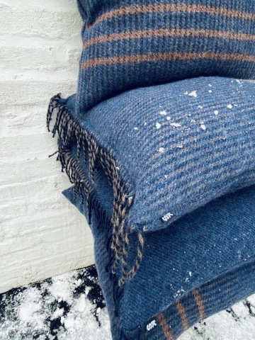 Hřejivá vlněná deka s ručně stáčenými třásněmi utkaná ve strmilovské rodinné tkalcovně podle našeho autorského návrhu.